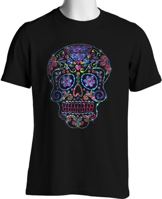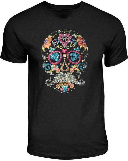 Rhinestone Studs Sugar Skull T Shirt Bling Fashion Mens dia de Muertos S to 4XL