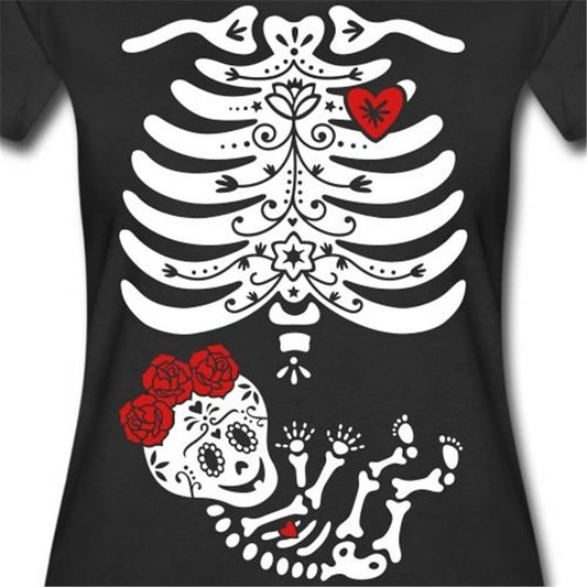 Tee Shirts Hipster Crew Neck Graphic Skeleton Sugar Skull