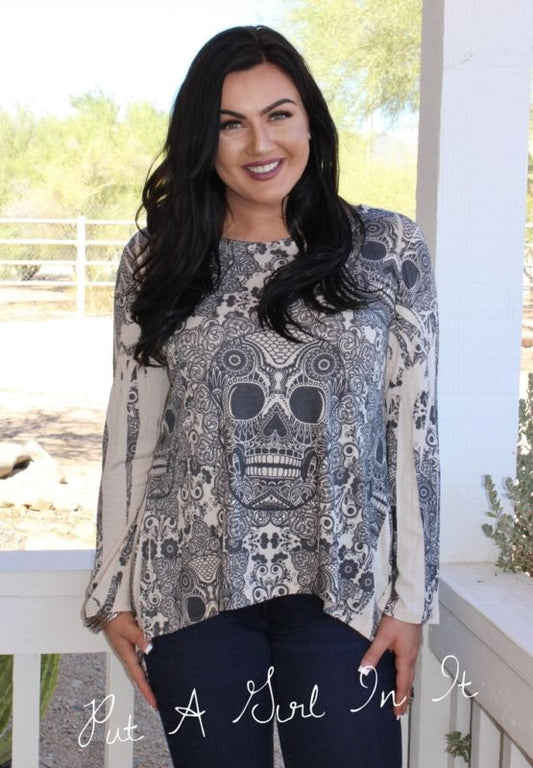 SUGAR SKULL SUBLIMATION SHARKBITE TUNIC SHIRT XL 1X 2X 3X