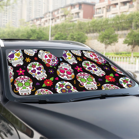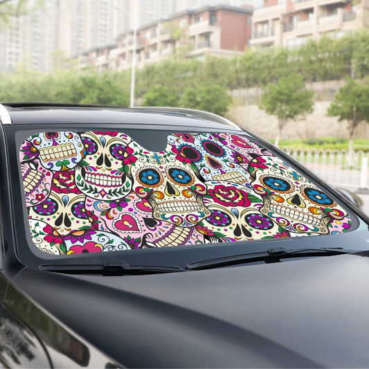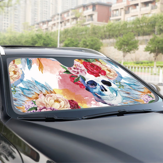 Floral skull Windshield Sunshade, Halloween rose skull sunshade