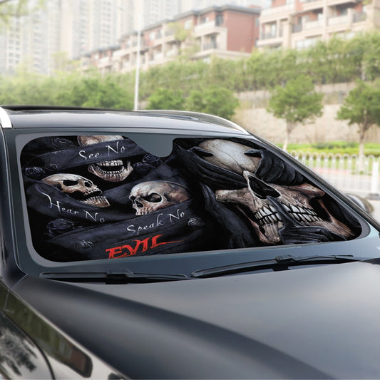 No see no hear no speak evils Windshield Sunshade, gothic skull car sunshade, halloween sunshade
