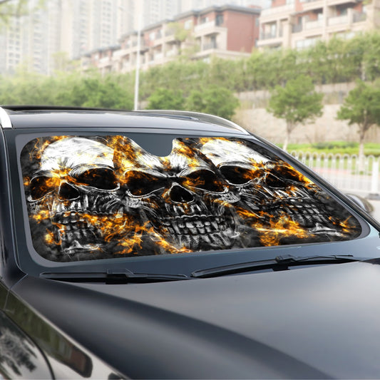 Flamding skull Windshield Sunshade, Skeleton skull sunshade, grim reaper sunshade