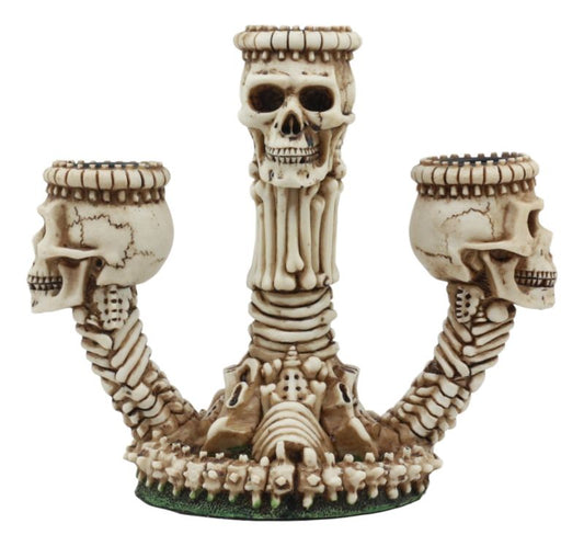 Gothic Trio Ossuary Skulls And Skeleton Bones Candelabra Candle Holder Decor