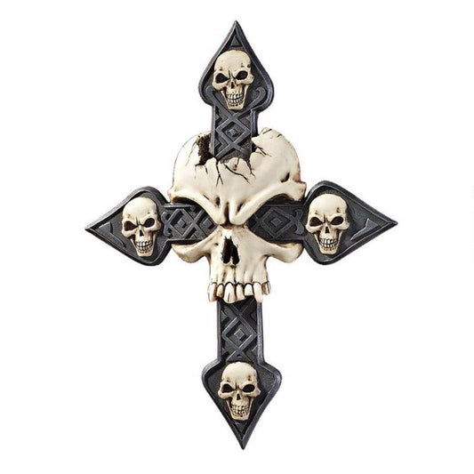 Gothic Cracked Skull Cross Fleeting Mortality Halloween Decor Wall Sculpture