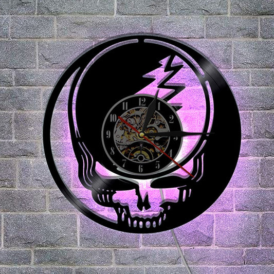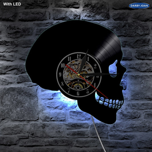 1Piece Skull Head Vinyl Record Wall Clock With Color Change Halloween Horror Skeleton Head Silhouette Wall Lamp Decorative Light