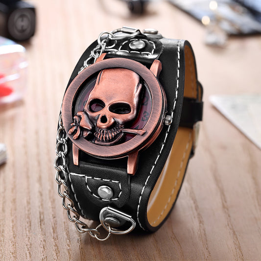 New Luxury Brand Skull Watch Men Quartz Leather Wrist Watches