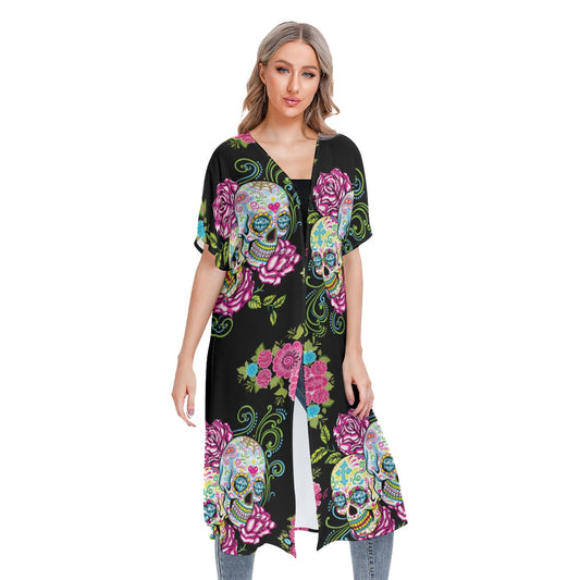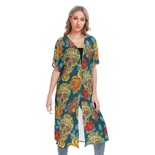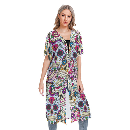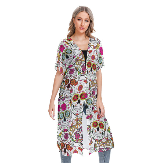 Sugar skull Mexican skull Women's Cardigan With Long Sleeve