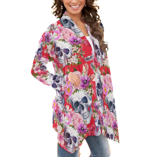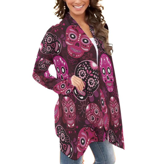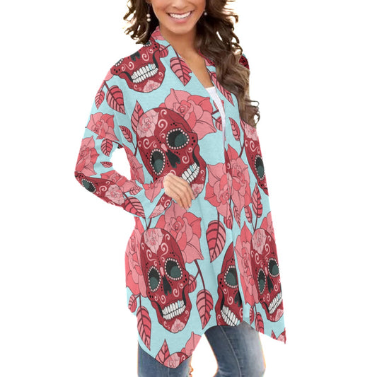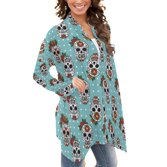 Dia de los muertos sugar skull Women's Cardigan With Long Sleeve
