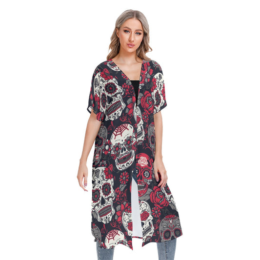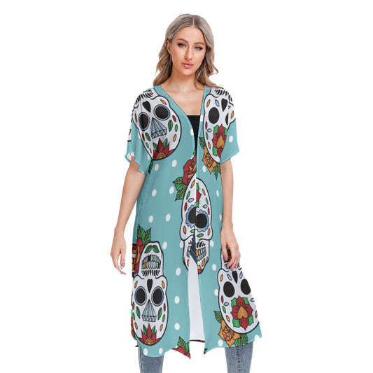 Dia de los muertos Calaveras skull Women's Cardigan With Long Sleeve