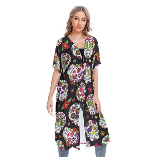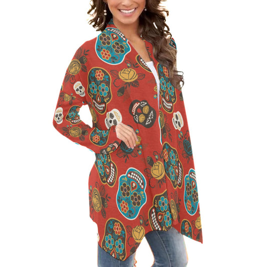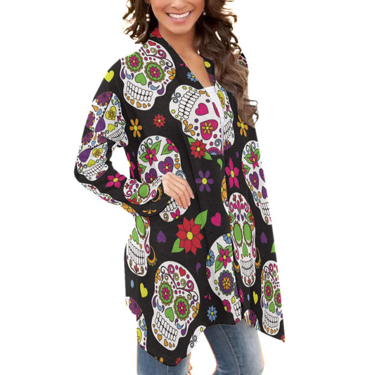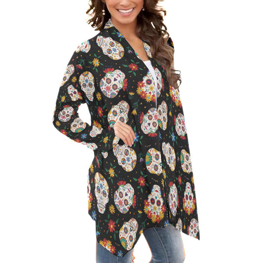 Mexican skull Calaveras Women's Cardigan With Long Sleeve