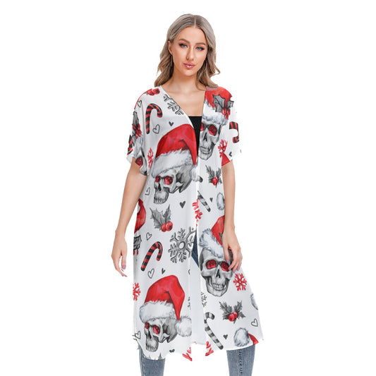 Christmas All-Over Print Women's Short Sleeve Cardigan