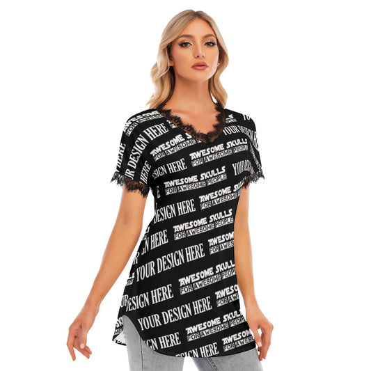 Custom print on demand pod Women's Shirts Lace Collar Long T-shirt