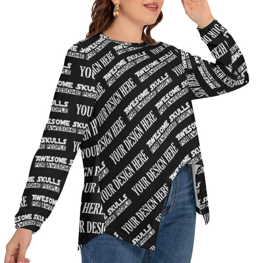 Custom print on demand pod Women's Shirts T-shirt With Asymmetrical Hem(Plus Size)