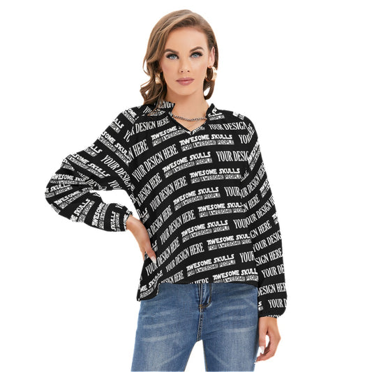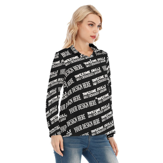 Custom print on demand pod Women's Shirts V-Neck Long Sleeves T-Shirt