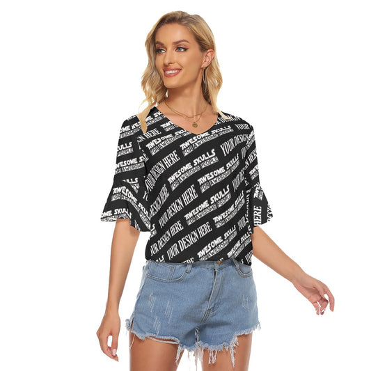 Custom print on demand pod Women's Shirts V-neck T-shirt With Lotus Sleeve