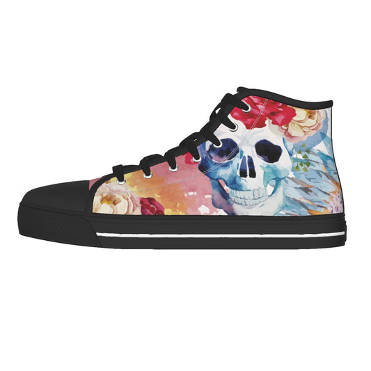 Floral skull Men's Canvas Shoes, Gothic skull Halloween canvas shoes