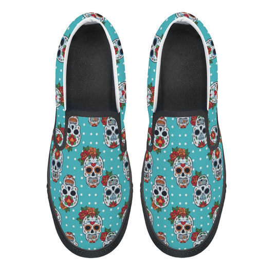 Floral sugar skull Day of the dead Women's New Casual Slip on Shoes