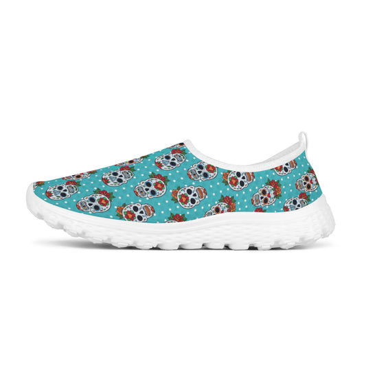 Floral sugar skull Day of the dead Women's New Arrival Mesh Knit Shoes