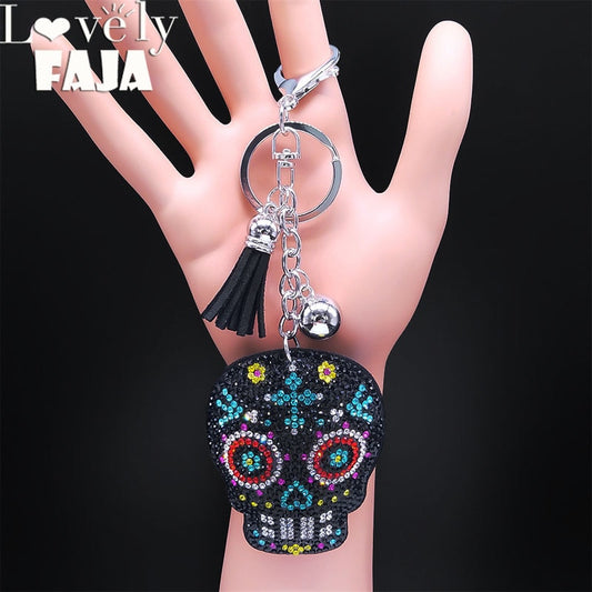 Death Skull Skeleton Tassel Key Ring Bag Accessories Crystal Rhinestone Alloy Keychain
