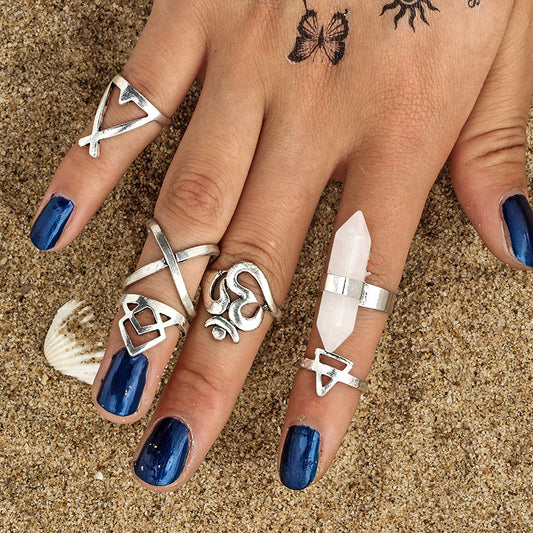 5pcs/Set Fashion High Quality Bohemia Style Rings Set Classic Shape Pattern Crystal Pendant for Women Charm Jewelry