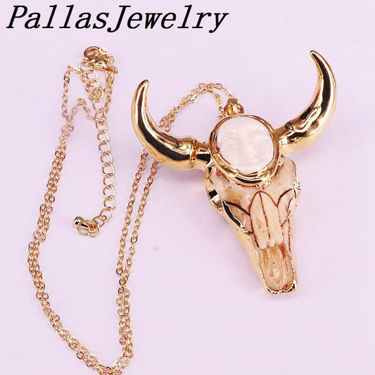 5Pcs Nature Bull Bone Pendant, Gold Filled Bull Head Pendants Necklace