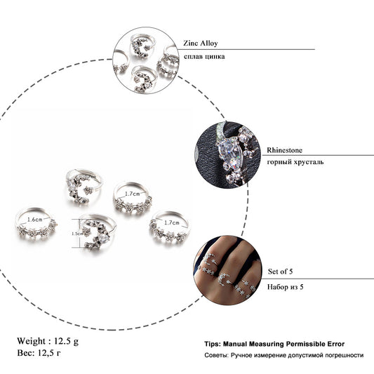 5pcs New Rings for Women Tiny Crystal Moon Finger Knuckles Ring Set Alliance Female Jewellery Party Wedding Bague Femme
