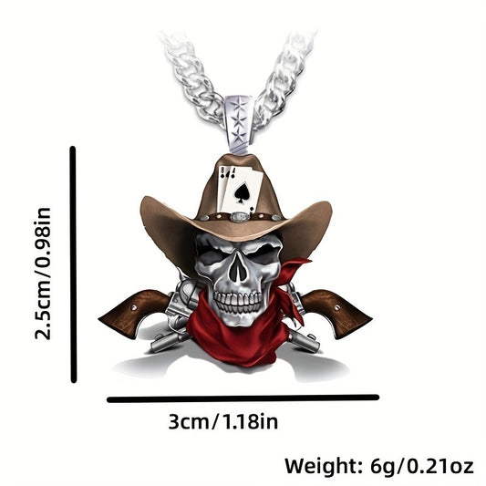 A Gothic Skull Necklace for Men, Retro Fashion Revolver, Western Cowboy Pendant, Punk Stainless Steel Men'S Jewelry, Gift Giving, Party, Birthday Jewelry, Creative and Cool Halloween Gift, Retro Style, Daily Wear, Celebration