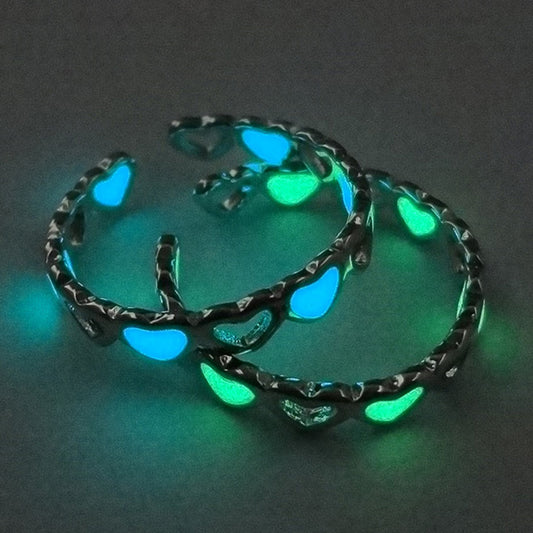 Adjustable Heart Shape Luminous Ring Glowing in Dark Silver Color Rings