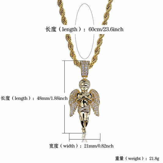 AAA+ Zircon Bling Ice Out Cupid Angel Pendant Necklaces Gold