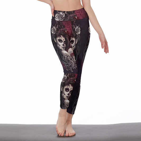 Beautiful girl sugar skull Women's Casual Leggings, sugar skull yoga fitness pants