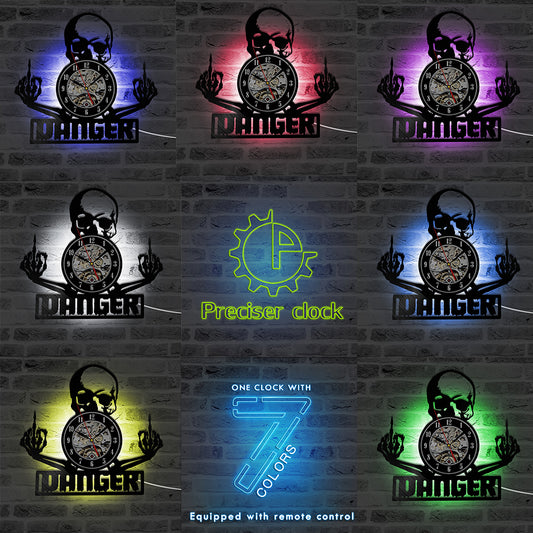 Black Hollow Skull Record Clock Vinyl LP Record Middle Finger Skull Wall Clock Decorative LED Clocks Modern Wall Art