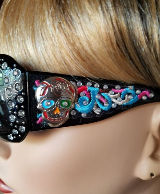 Black Frame Rhinestone Sugar Skull Embroidered Bling Sunglasses U V 400