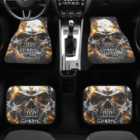 Gothic skull car floor mat, flame skull seat cover for car, gothic skull car rug, goth car mat flooring, evil car rug, flame skull car floor