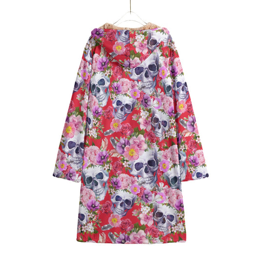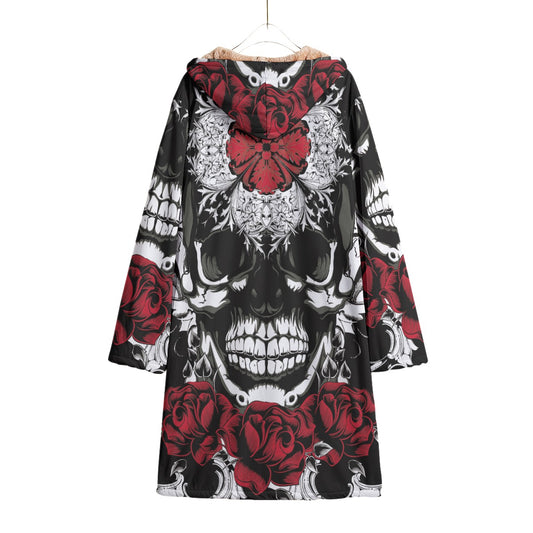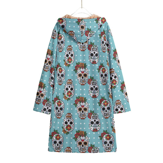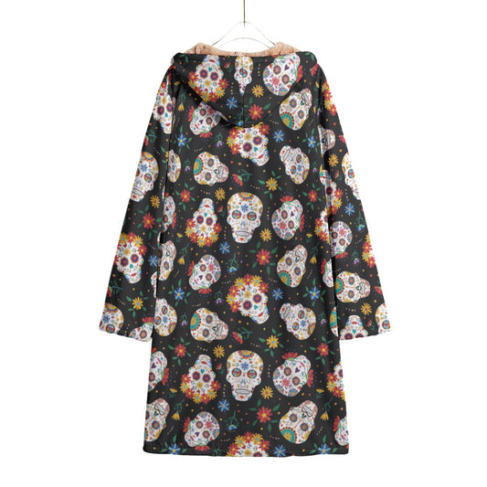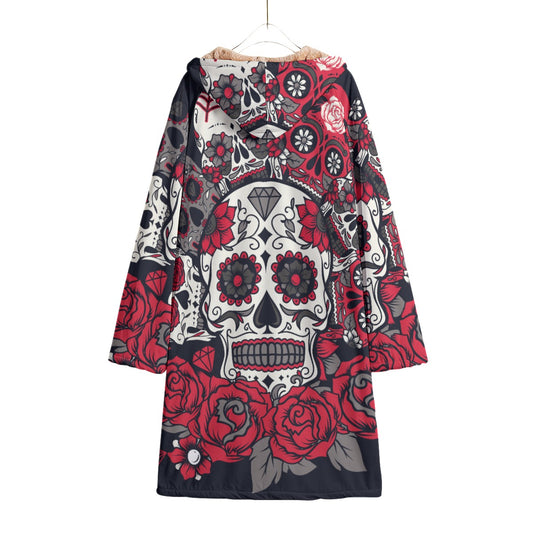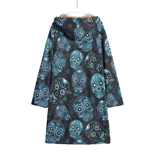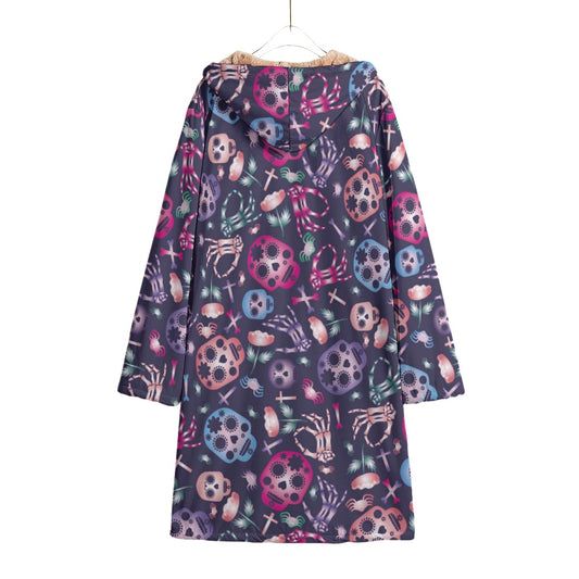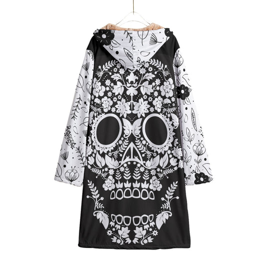 Dia de los muertos sugar skull cloak Horn Button Long Fleece Windbreaker