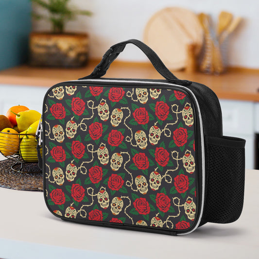 Rose floral sugar skull pattern Detachable Leather Lunch Bag