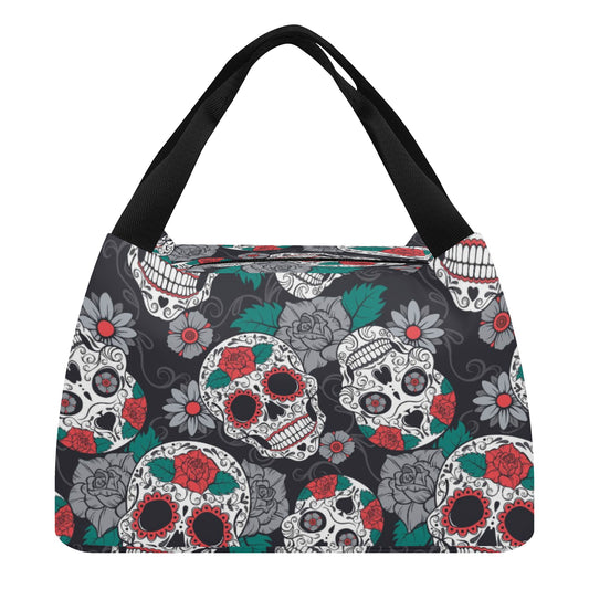 Floral skull pattern Day of the dead Portable Tote Lunch Bag