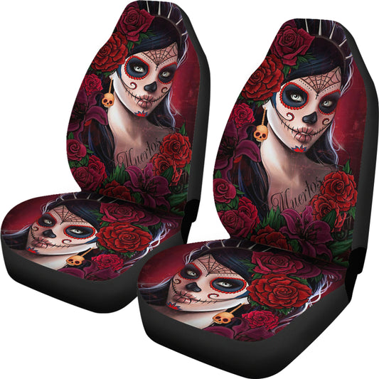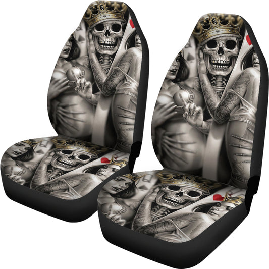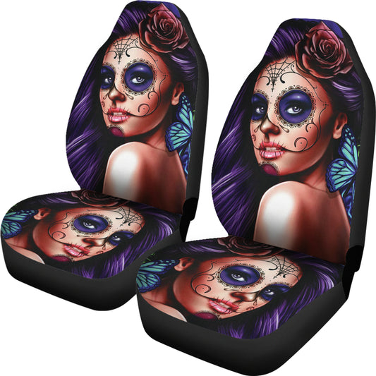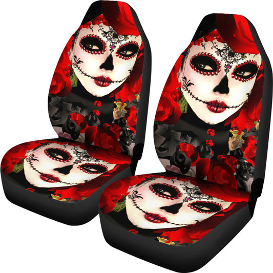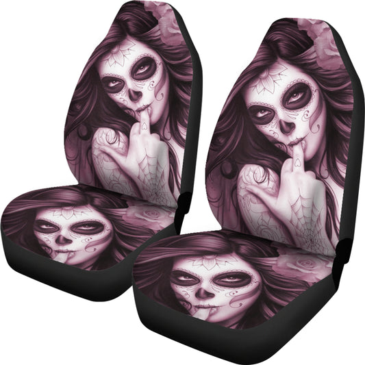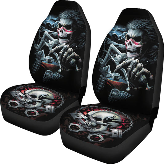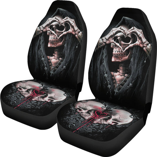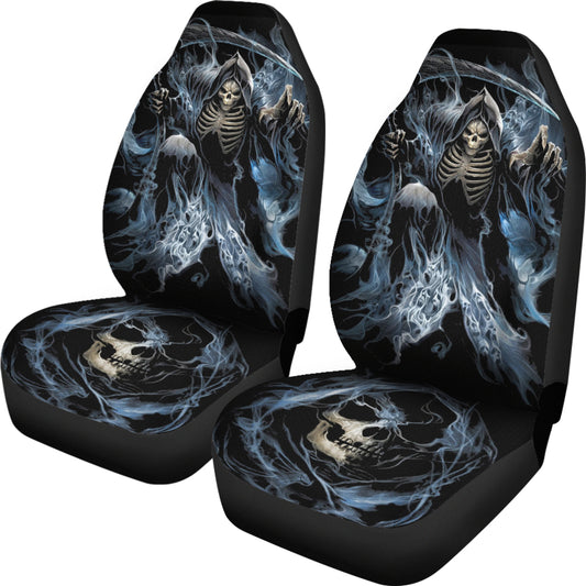Set of 2 pcs gothic grim reaper skull girl car seat covers
