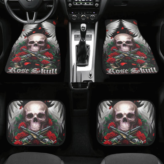 Rose Skull Seat Cover for car, skull rug for car, Skeleton skull car seat cover mat, Halloween skull evil car seat cover skull mat for car