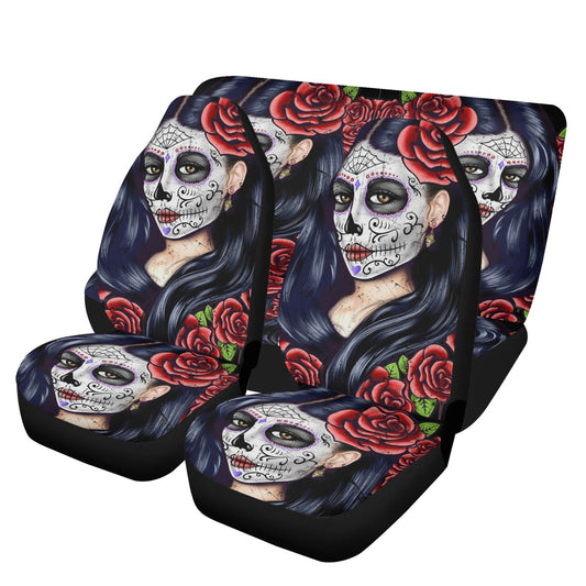 Candy skull seat cover for car, Day of the dead skull Seat Covers mat for car, sugar skull seat cover rug mat for car, skull car seat cover