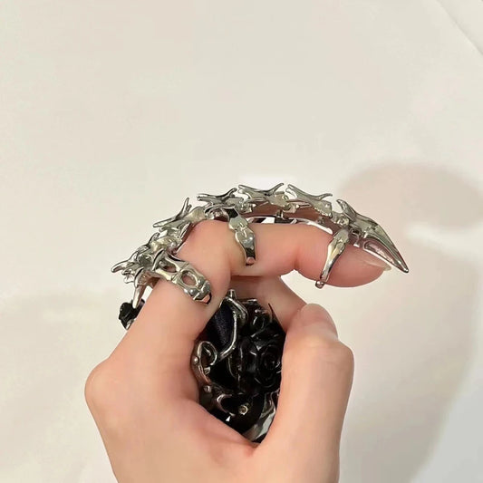 Cyberpunk Spinal Bone Ring Unisex Mechanical Spikes Movable Joint Metal Gothic Sharp Claw Finger Ring Jewelry Accessories Gifts