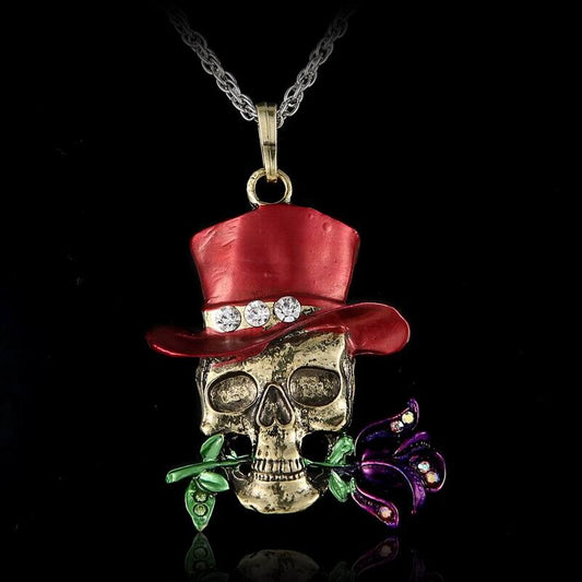 Long Jewelry Sweater Necklace Clear Crystal Skull Flowers Jewelry