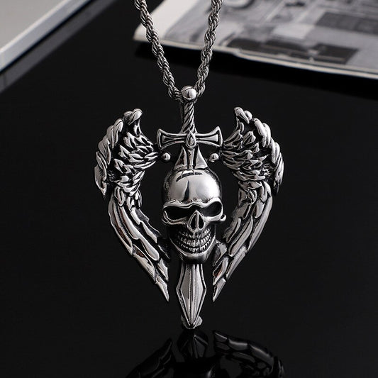 Punk Retro Skull Sword Wings Pendant Domineer Personality Men Titanium Steel Jewelry