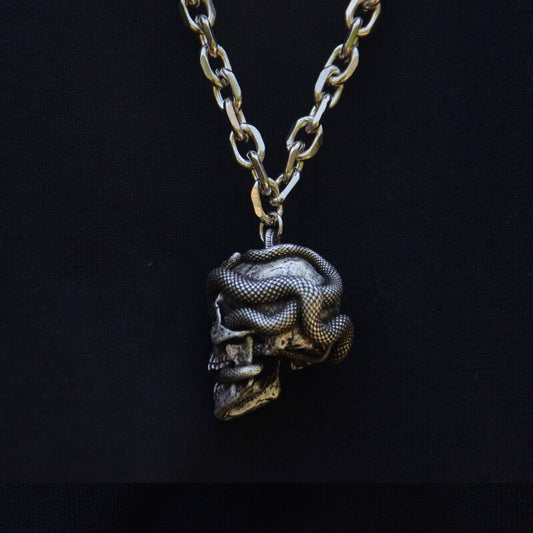 Snake Skull Pendant Wicca Gothic Necklace Punk Jewelry