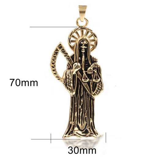 Hip Hop Vintage Holy Saint Death Santa Muerte Skull Biker Pendant Golden