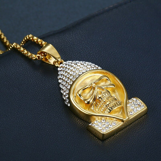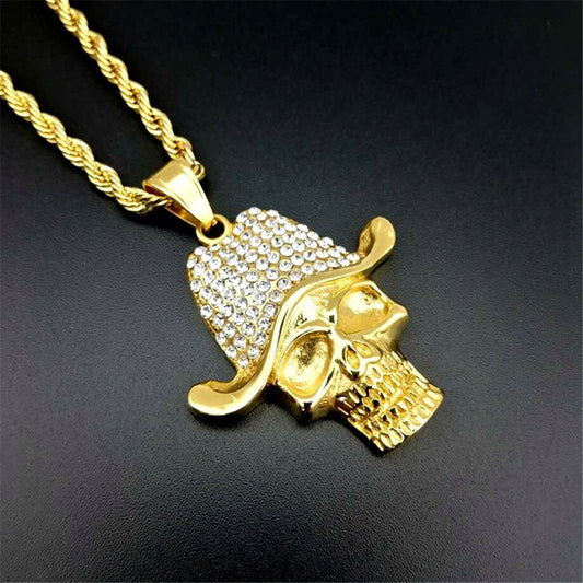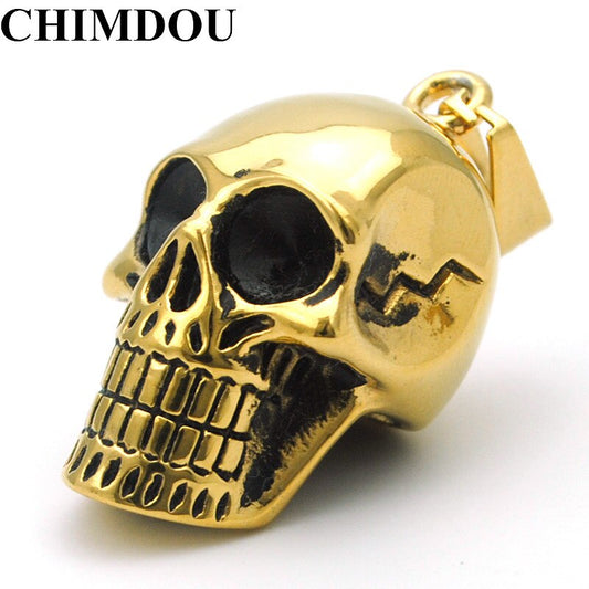 Stainless Steel Skull & Skeleton Pendant Necklace For Women Men Gold Color