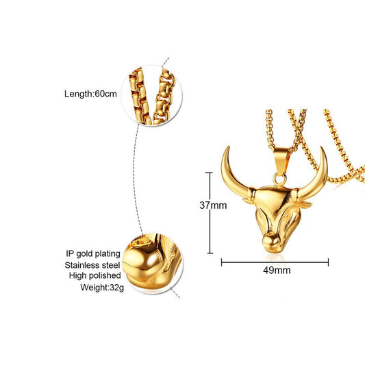 Unique Bull Head Charm Necklace for Men Gold