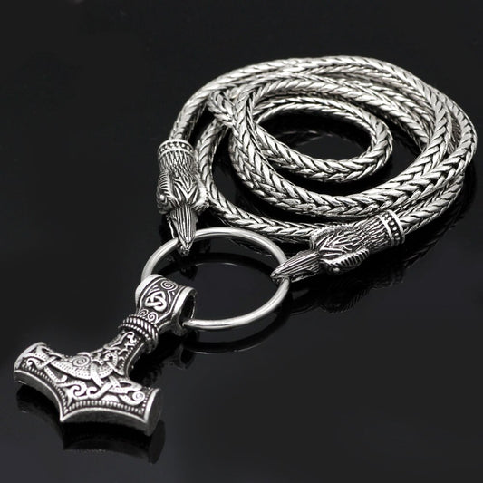 Cord Odin's Ravens Of Thor's Hammer Mjolnir Scandinavian Axe Wolf Pendant