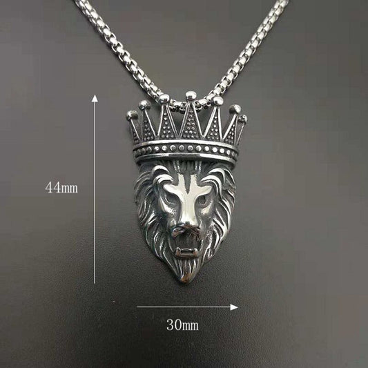 Punk Rock Titanium Steel Crown Lion Head Men Pendants Necklaces