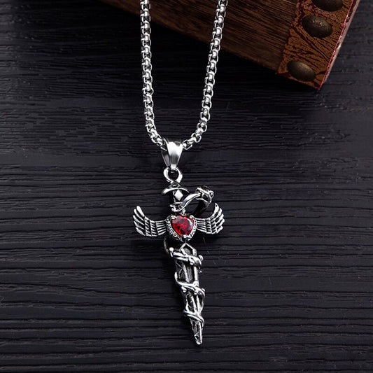 Exaggerated Punk Heart Cross Titanium Steel Necklace