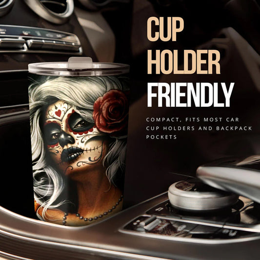 Sugar skull girl tumbler, Mexican skull girl mug tumbler, Dia de los muertos skull day of the dead skull girl gothic travel mug cup tumblers